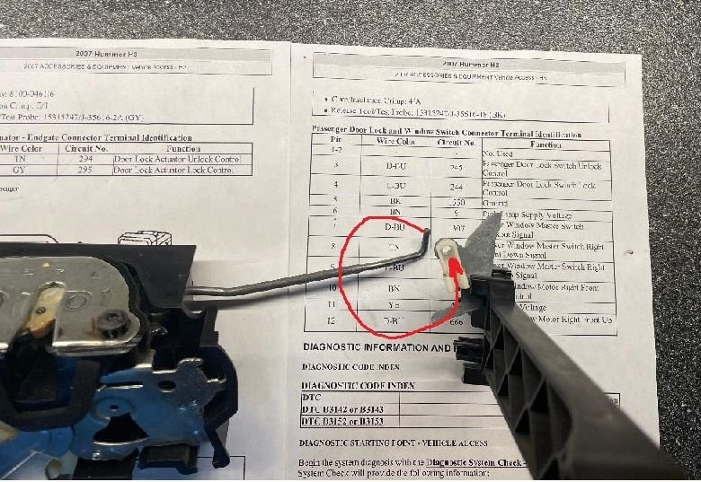 So, if your power lock mech fails, and you are lucky enough to stick your thumb/finger in there to push the white mech lever up, the door will then open. I am not that lucky. When mine cashed in, it was seized and was never going budge. So.... this is what you have to do to open the door from the inside. First you need a highly sophisticated specialty tool that is not commercially available. Until now! Here it is, the H3 Hummer Stuck Azzed Broken Lock Actuator Pull Tool. Limited availability. Call now and often....