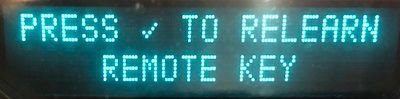 The REMOTE KEY LEARNING ACTIVE will be displayed. At this point the programming mode is activated
