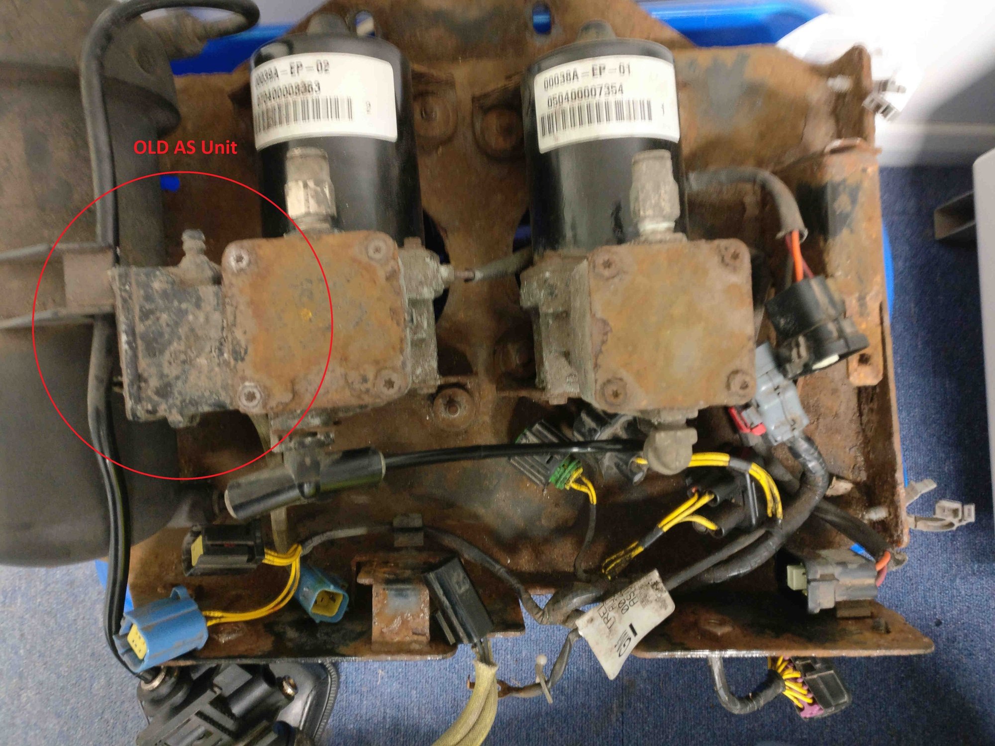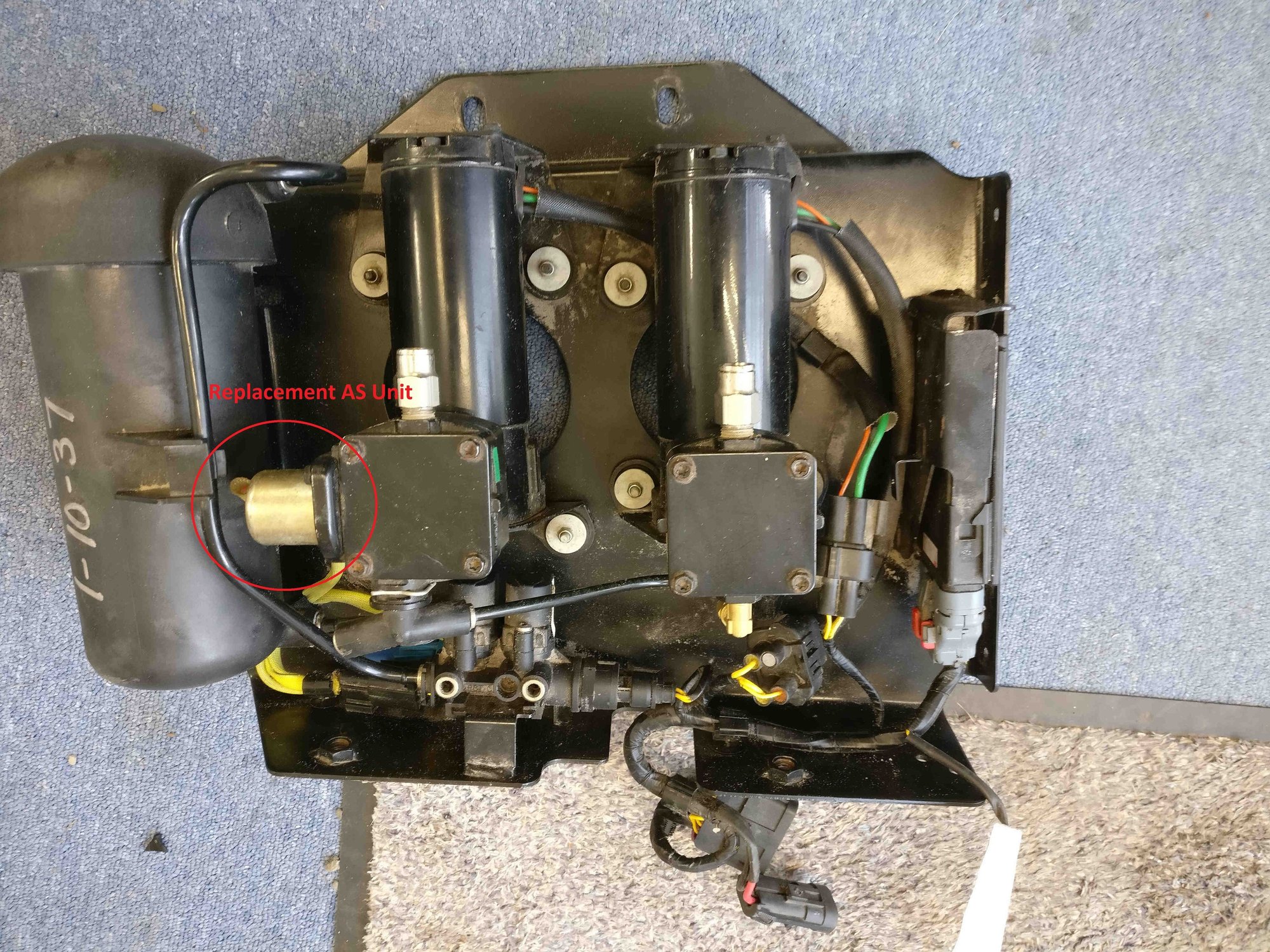 There is a single exhaust valve which may be being energized but not operating i.e. either stuck, defective or blocked. I'm not sure it's serviceable and the one's I've seen were very corroded, but I've never tried to repair one myself. It's a similar story with the pressure sensor, however the ECU cannot determine which sensor is not working i.e. ride-height sensors or air-pressure (around 21mA), in this case code C0696 is usually set. There has been another member who thinks he's had a faulty pressure sensor, but it was never 100% proven. The pressures are around 42psi (0,43V) at normal height rising to to 90psi (2.04V) when extended. I would be tempted to disconnect the truck's battery, unplug the exhaust valve and try remotely powering it on, taking great care to support the truck should it work and the suspension collapses. The fact that the ride-height will lift the extra 2" suggests that the air pressure is being correctly read by the ECU and, as you suggest, the exhaust side isn't working. If manually operating the exhaust valve works then it's either a wiring fault or the ECU itself. If you are working on the As Unit or ECU, disconnect the truck battery to avoid setting another DTC. Here are a couple of pics. https://cimg8.ibsrv.net/gimg/www.hum...fef68ddea5.jpg https://cimg1.ibsrv.net/gimg/www.hum...1dffc73f78.jpg |
