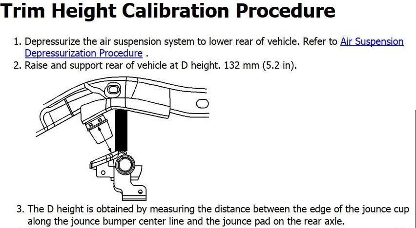 to secure frame. Safety first when crawling under, yet I can crawl under my 3 without a jack. Depressurized air suspension may impenetrable? RAISE/LOWER & SUPPORT & CHECK/ADJUST height as needed on both sides, then start the calibration. The measurement is 5-3/16" or (5.2in) as you posted above: