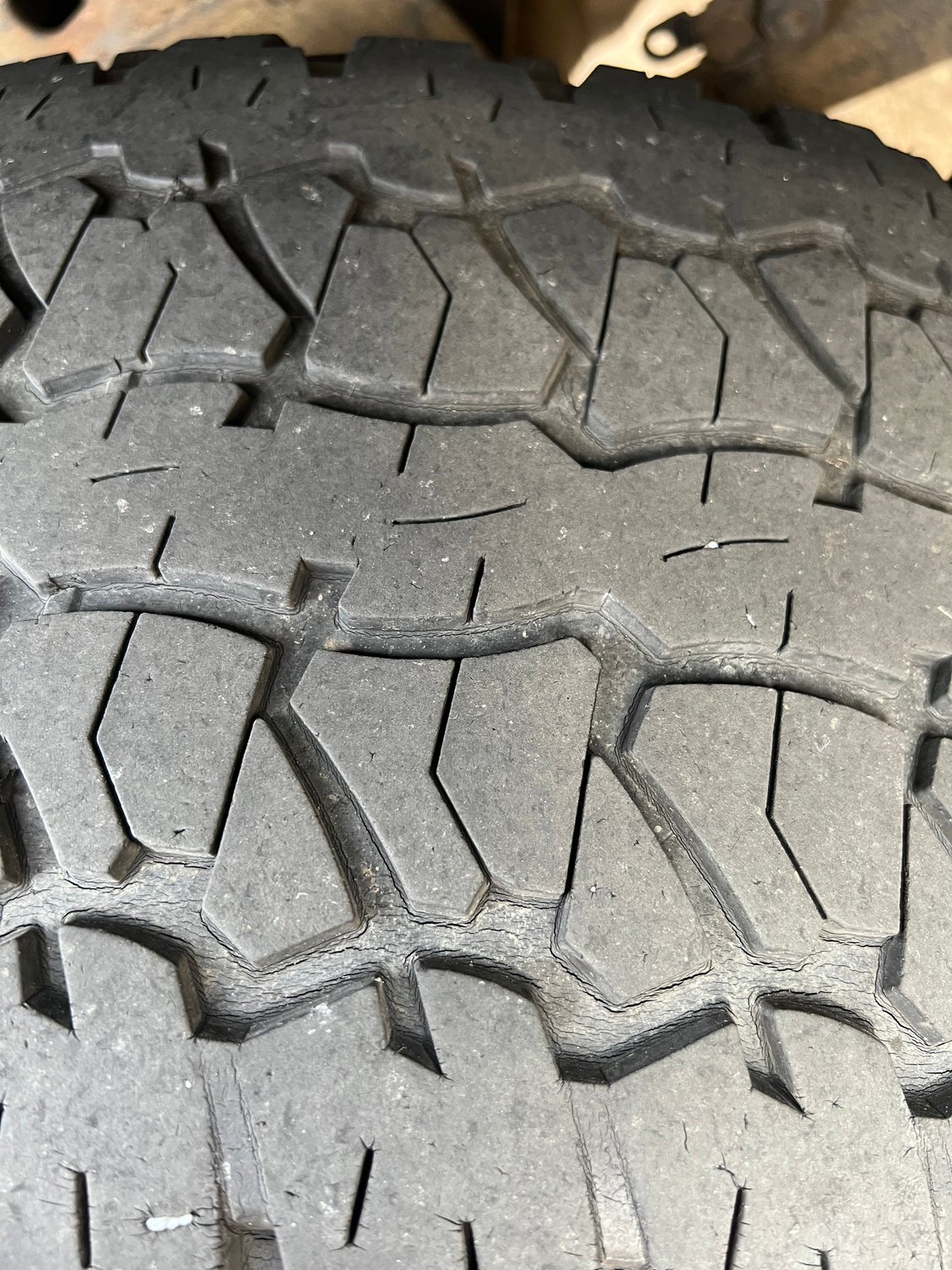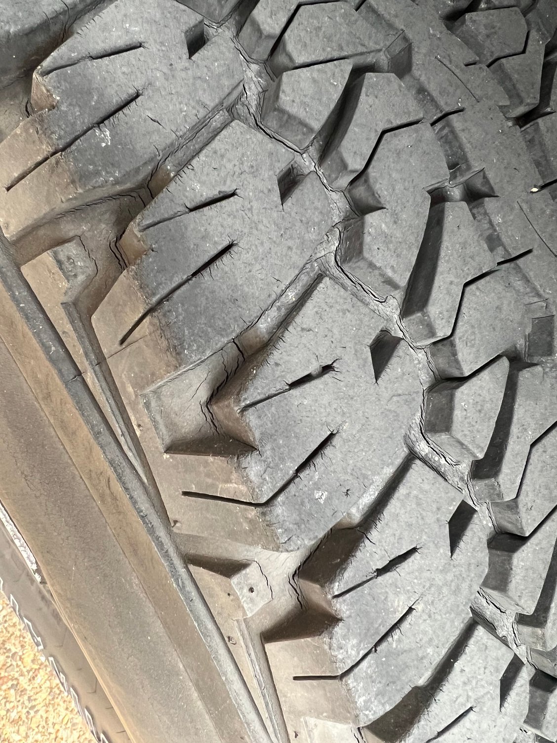 Cracking can also happen when you air down and wheel on rough terrain like rocks etc... makes the tire flex, indent and even twist so that a newer tire can have cracks in between treads like your pics.