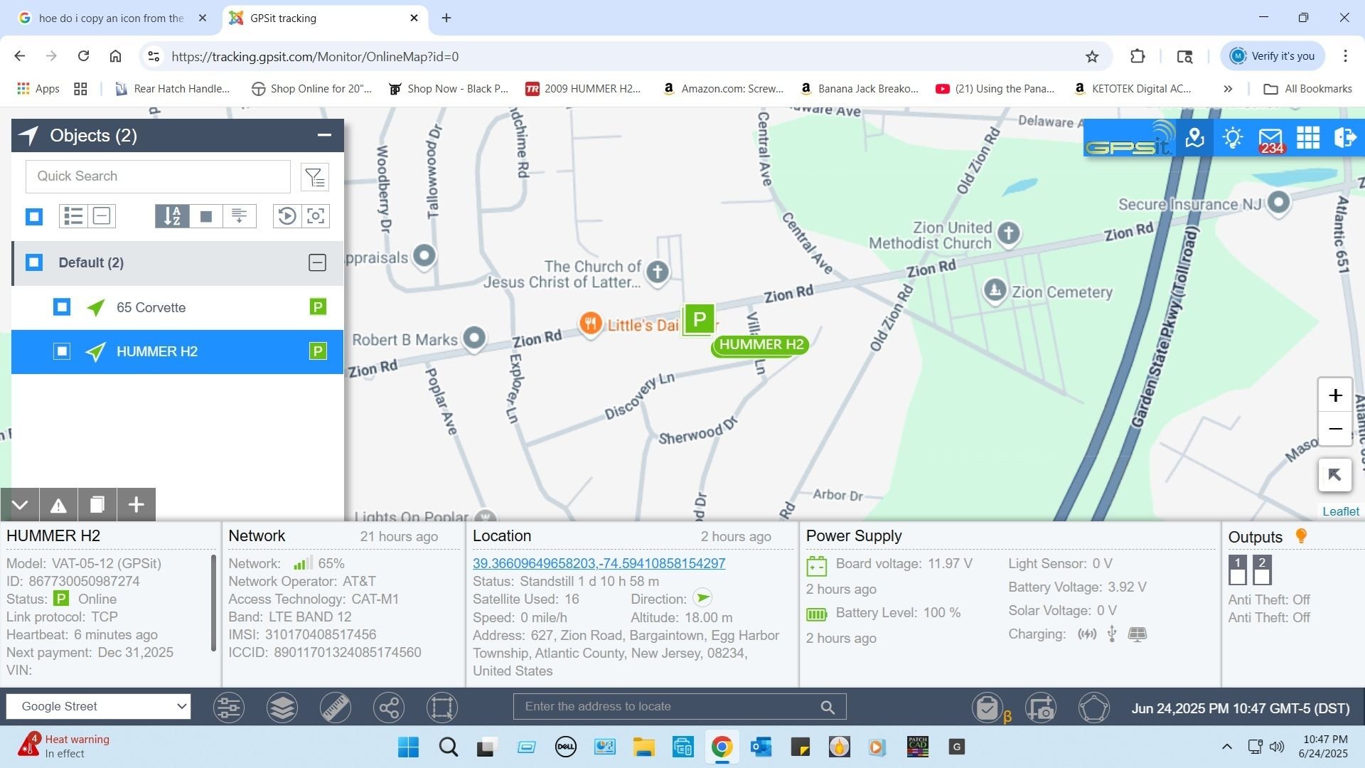 The best part is if the rig is taken...I know where it is by my phone track app and I can send a signal to trip the lock out with the push of a button. Here's a screenshot of the tracking. On the lower right are two buttons labeled ..outputs. #1 sends the signal to lock the shifter. Not Paranoid am I...LMAO