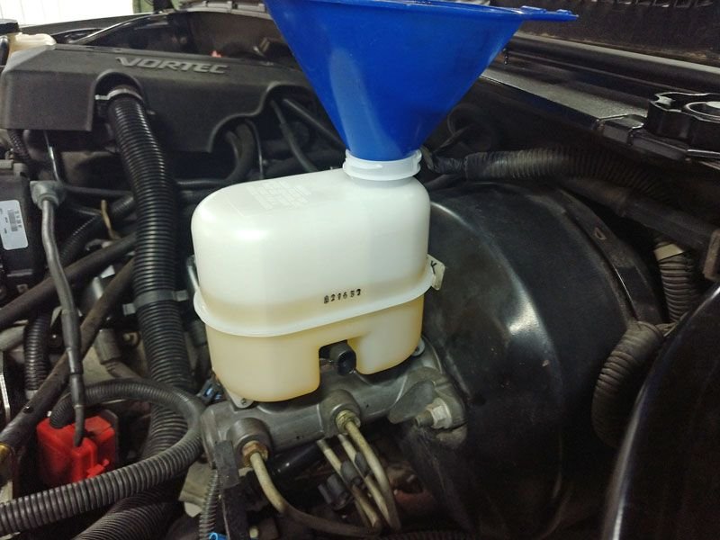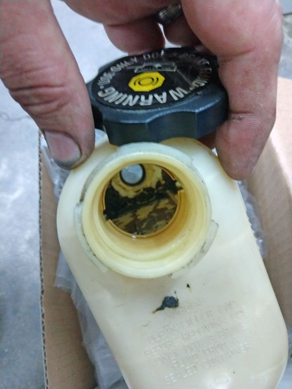 What I found on the reservoir is that it is compartmentalized inside which makes it near impossible to get all the sludge out. Probably could be done but in my case the low cost of a replacement outweighed the amount of time and frustration it would have taken to try. Plus the old reservoir was so yellowed and darkened with age that even with fresh fluid it still looked old and burned. I took a few pics... Looking down into the reservoir you can see an internal wall toward the large part of the tank.