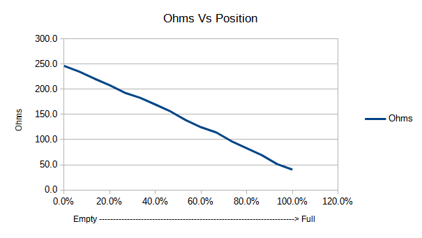 The fuel level sensor is essentially a variable resistor attached to a float located inside the fuel tank (see below)