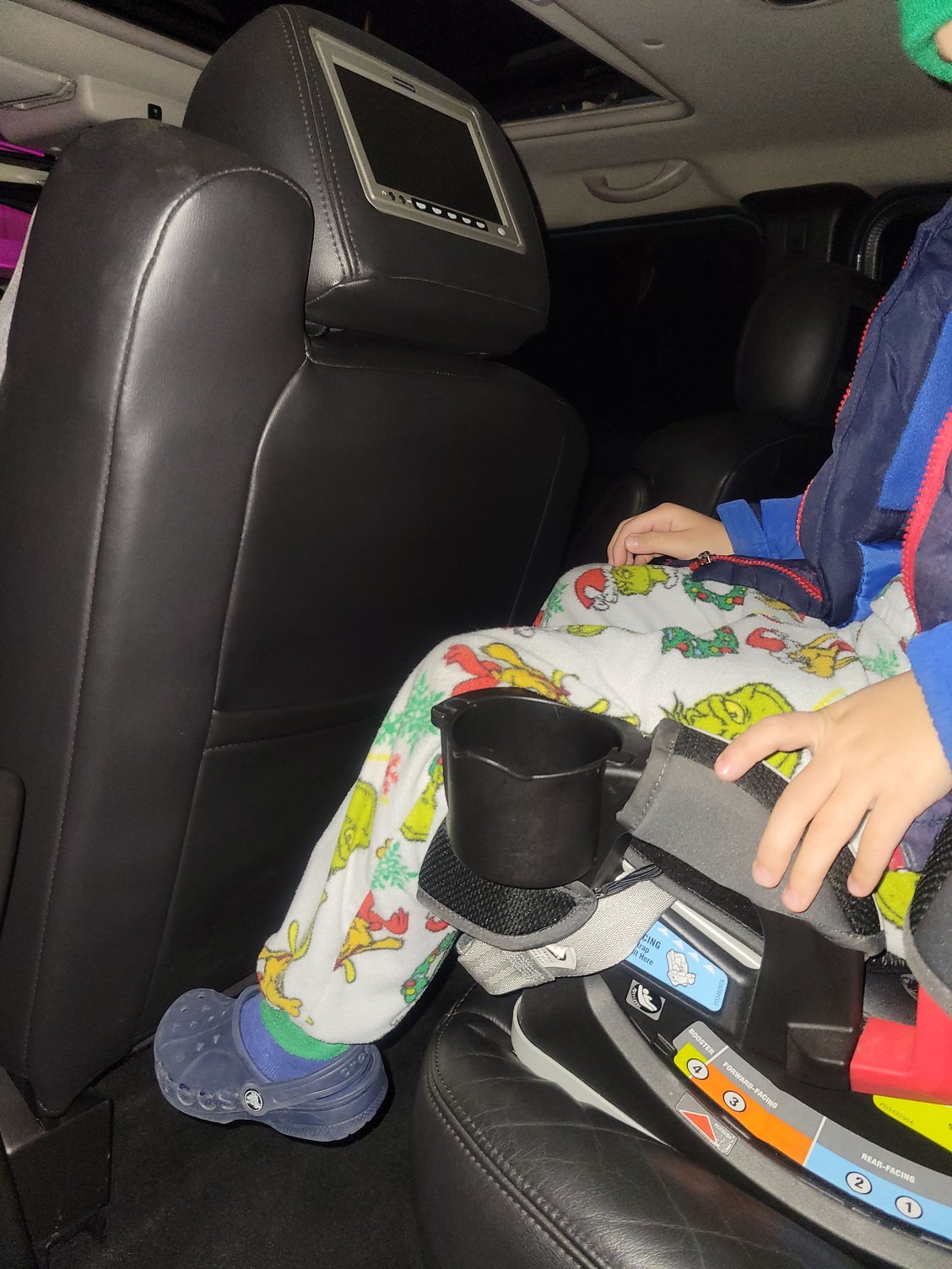 My Wife has a Toyota Sienna and the seat can slide back. This is nice because the kids have room to walk in front on the 2nd row. Not the case with the H2. Plus if you see the photo, their shoe is touching the back of the front seat.