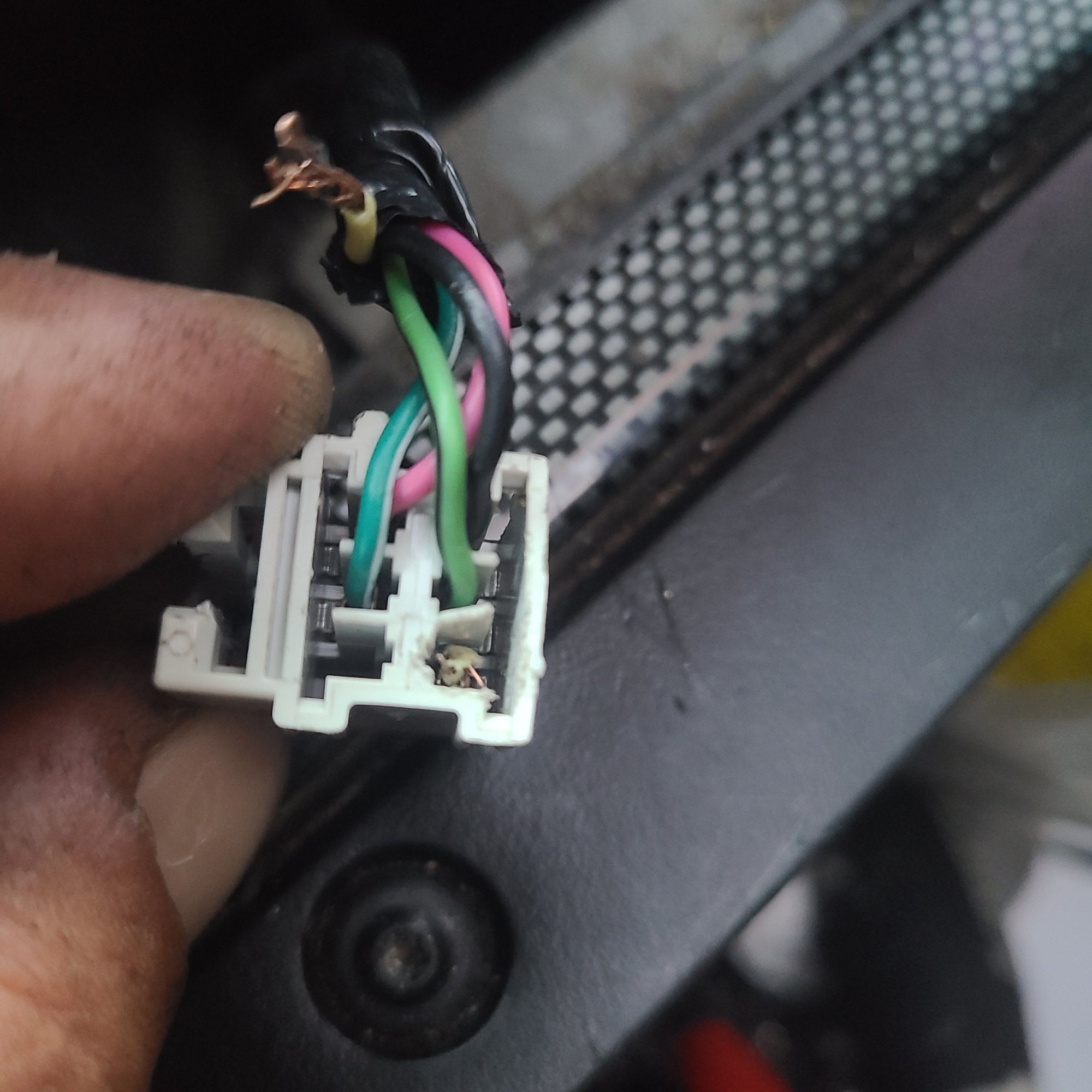 the picture above is how i had found mine. the end of the cable had pulled out. i depinned it, the pin connector and soldered it back. i had to unravel the tape so that the yellow wire in the loom got a bit more slack out of it.