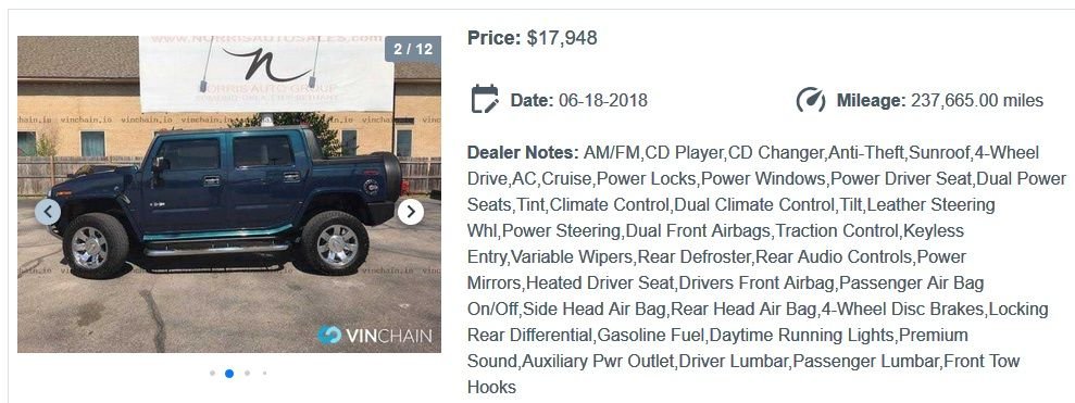Hummer H2For those who like a little more gleam to their Hummer, the H2 offers a similar rugged look as the H1, but as a lower cost, and with more added features, making it almost a massive luxury SUV.