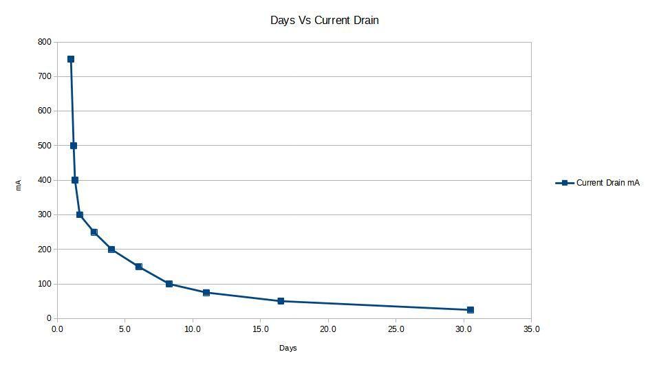 According to my math 10mA would be about around 40 days.