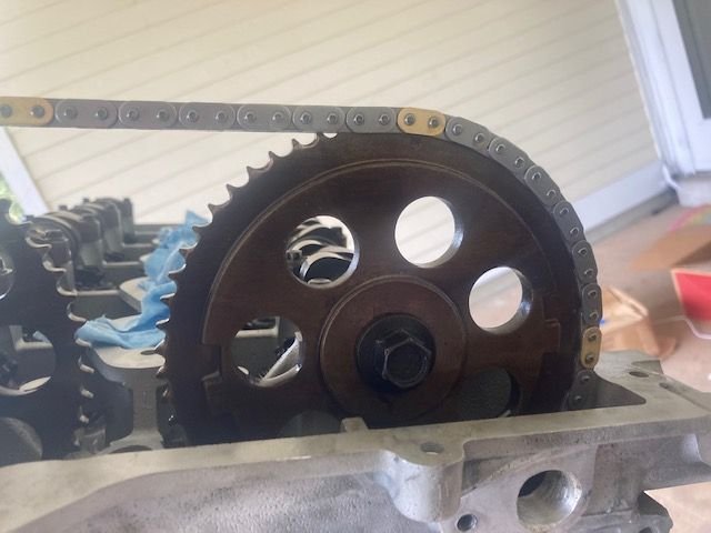 With the bearing brace/caps not installed (a mistake on my end), there is still too much tension on this chain.  Take one hand (not shown due to working the camera) and try to pull the chain off the crankshaft.....