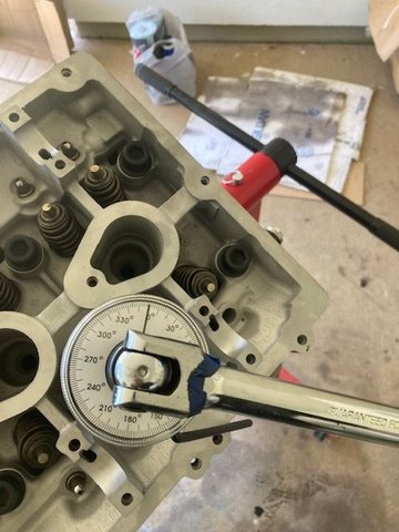 Installing new bolts.  The connecting rod bolts are first tightened to to 18 ft-lb, then an additional 110 degrees.  Do not reuse connecting rod bolts.