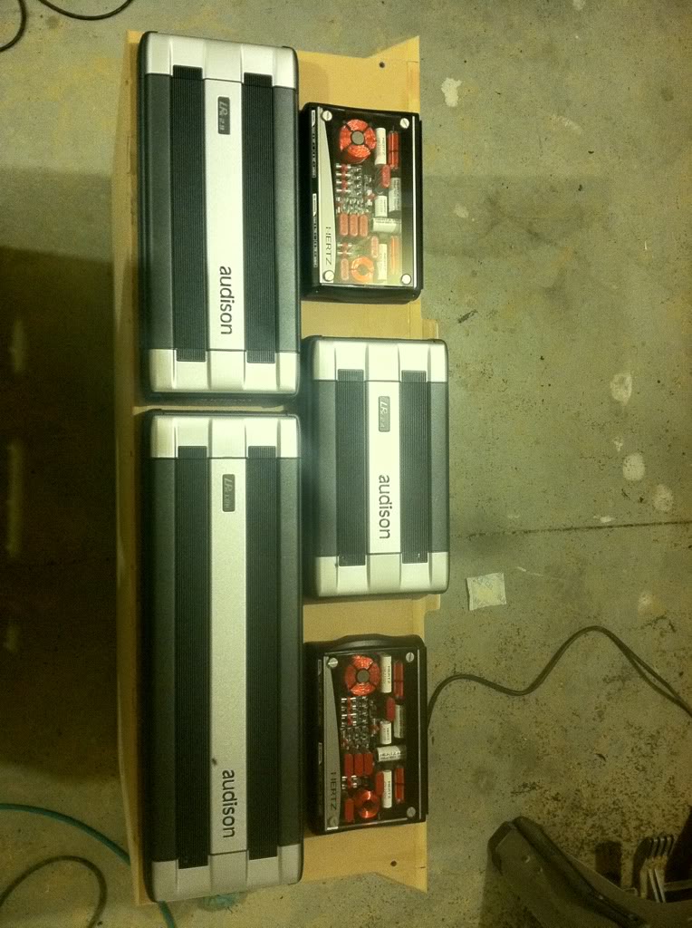 Laid out the amps and crossovers to see what it will all look like before i build the rack mounts. Aren't those crossovers gorgeous? :D