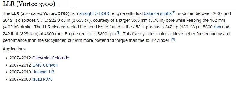And.............. that would be the same... a ____ year 3.7L Atlas motor is the same, Chevy, GMC, Hummer, makes no difference. Each model year uses the identical power plant.