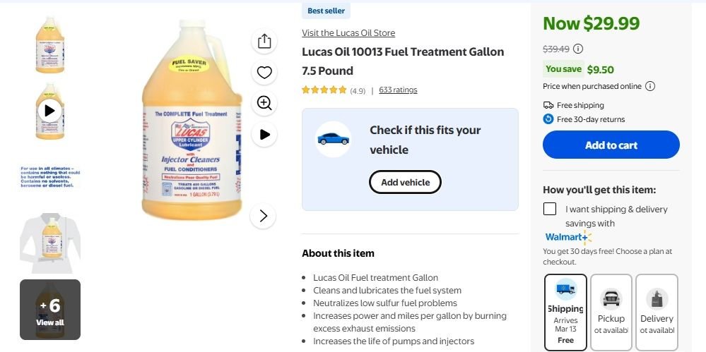 I also add LUCAS in the tank, This is DEFINITELY BUY THE GALLON=>FOR HUGE SAVINGS!Lucas Oil 10013 Fuel Treatment Gallon