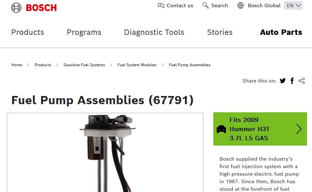 Can you expand upon why the Bosch pump you bought was wrong? RockAuto has the Bosch pump for the H3T Alpha as well so I am wondering. RockAuto shows the MU1883 for the H3 Alpha and they have them in stock. I do not know if or what the difference would be in fuel pumps for the H3 Alpha vs H3T Alpha.