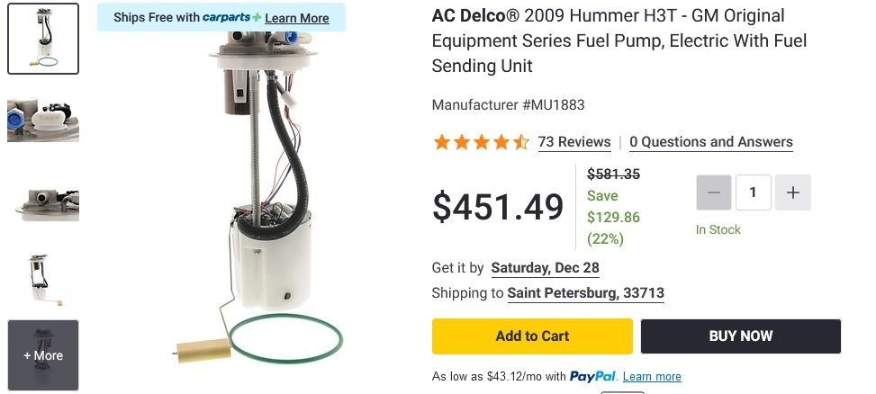 does anyone know of any fuel pumps available for a 2009 H3T Alpha?