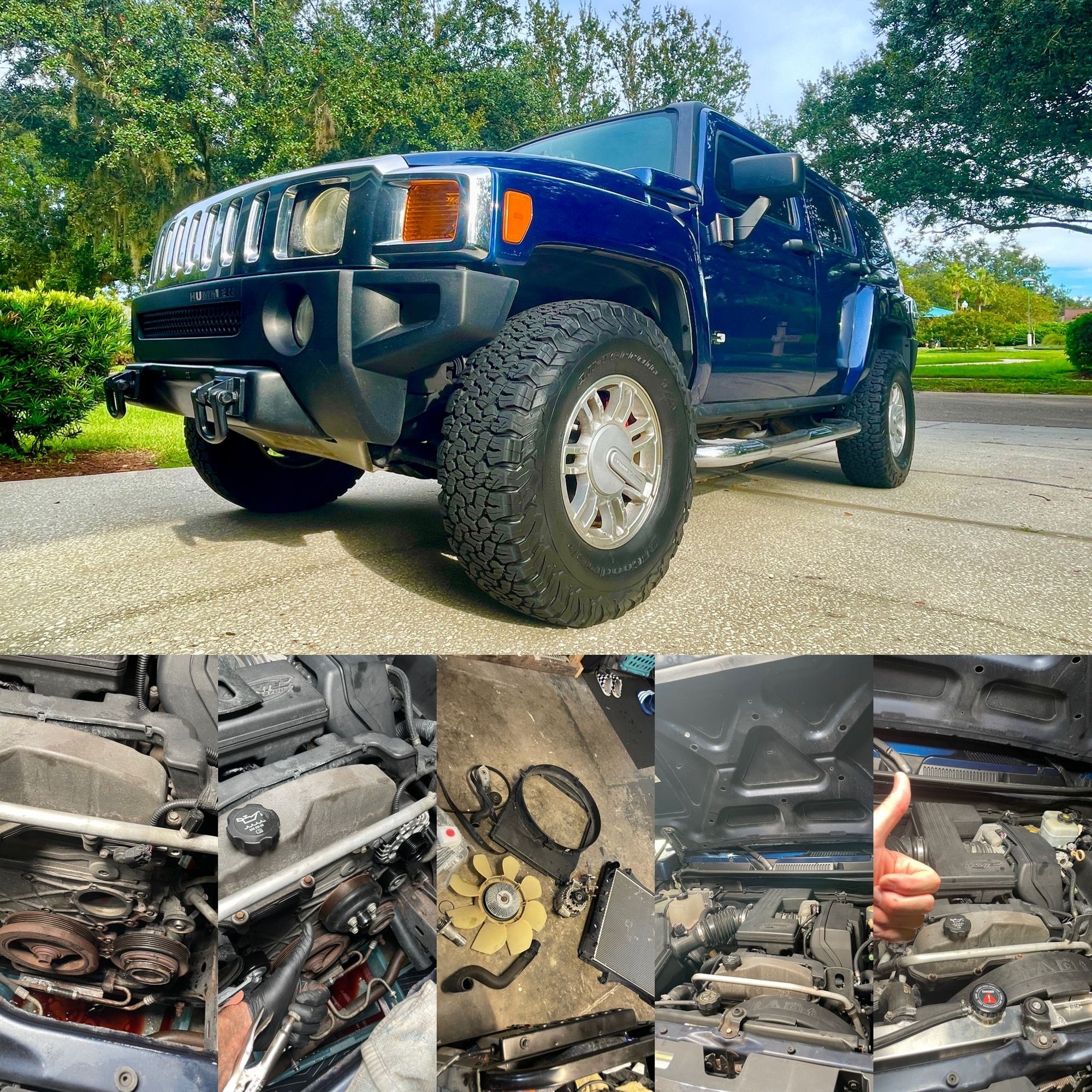 Just picked up a pretty much bone stock unmolested 2007 H3 with only 79K on it. Looks like the rad has been replaced and has a touch screen where the radio should be.