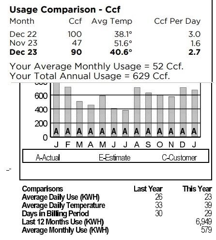 My natural gas & electric usage decreased 10-12%, yet my total cost for the year increased 17%.