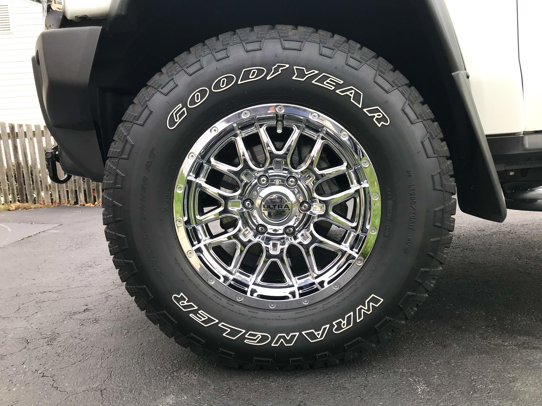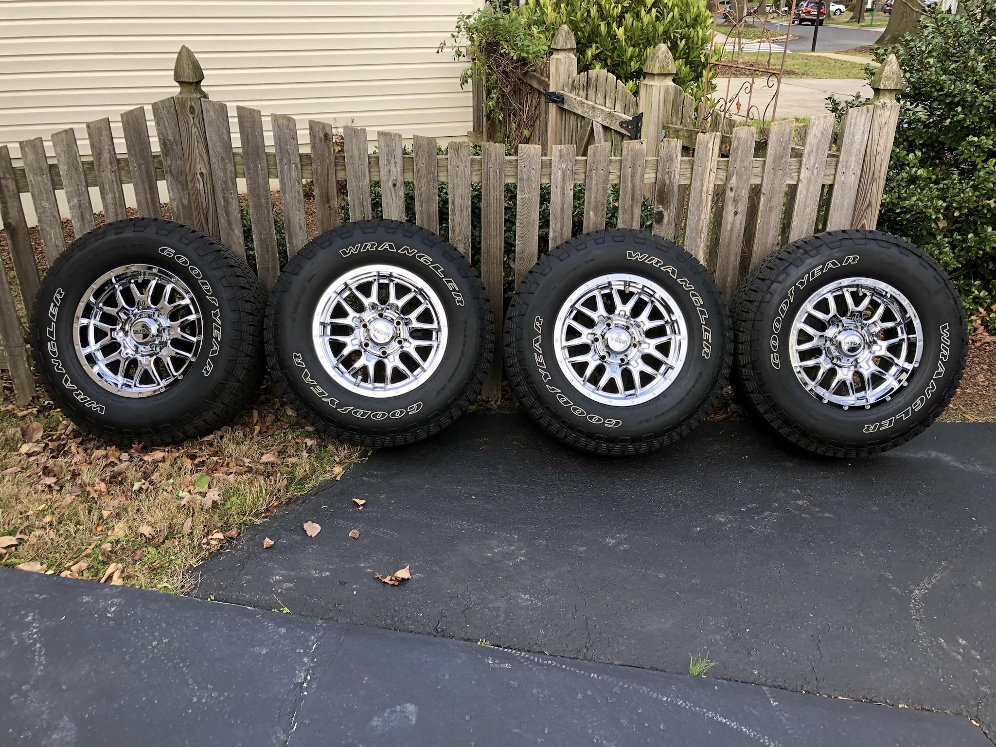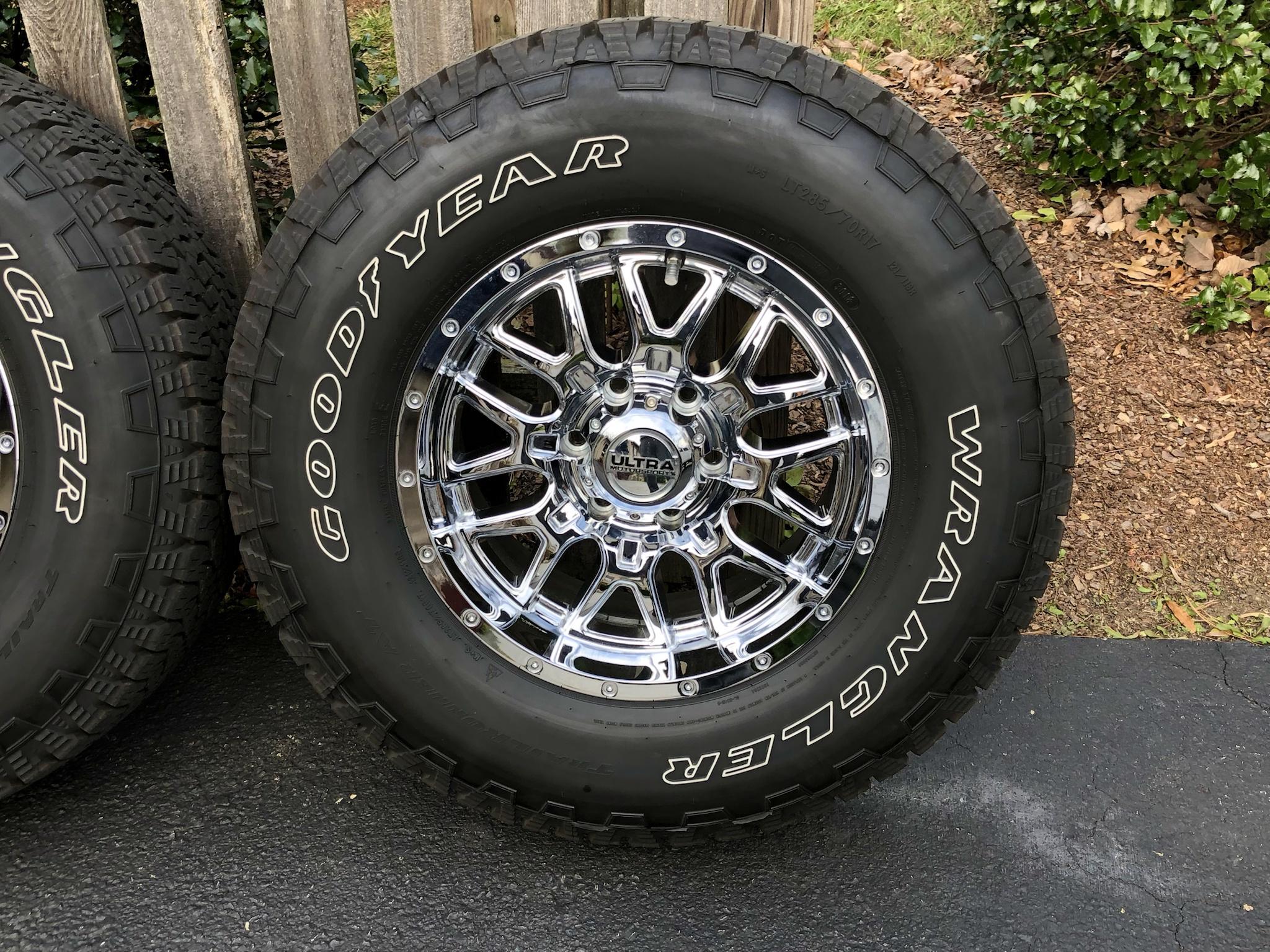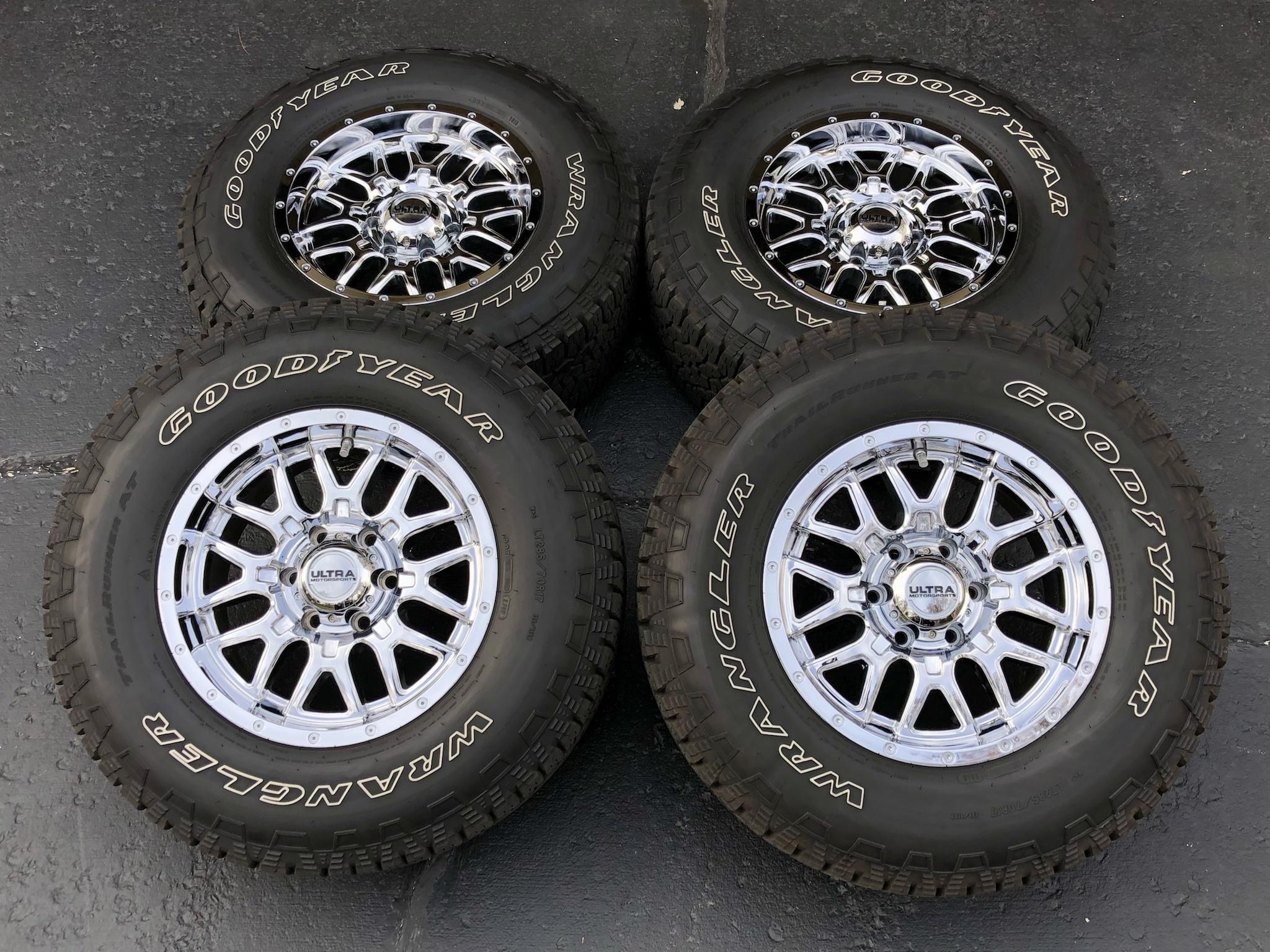 Selling my 17 x 9 Ultra Motorsport Hunter ET 12 wheels with 285/70/17 Goodyear wrangler tires.