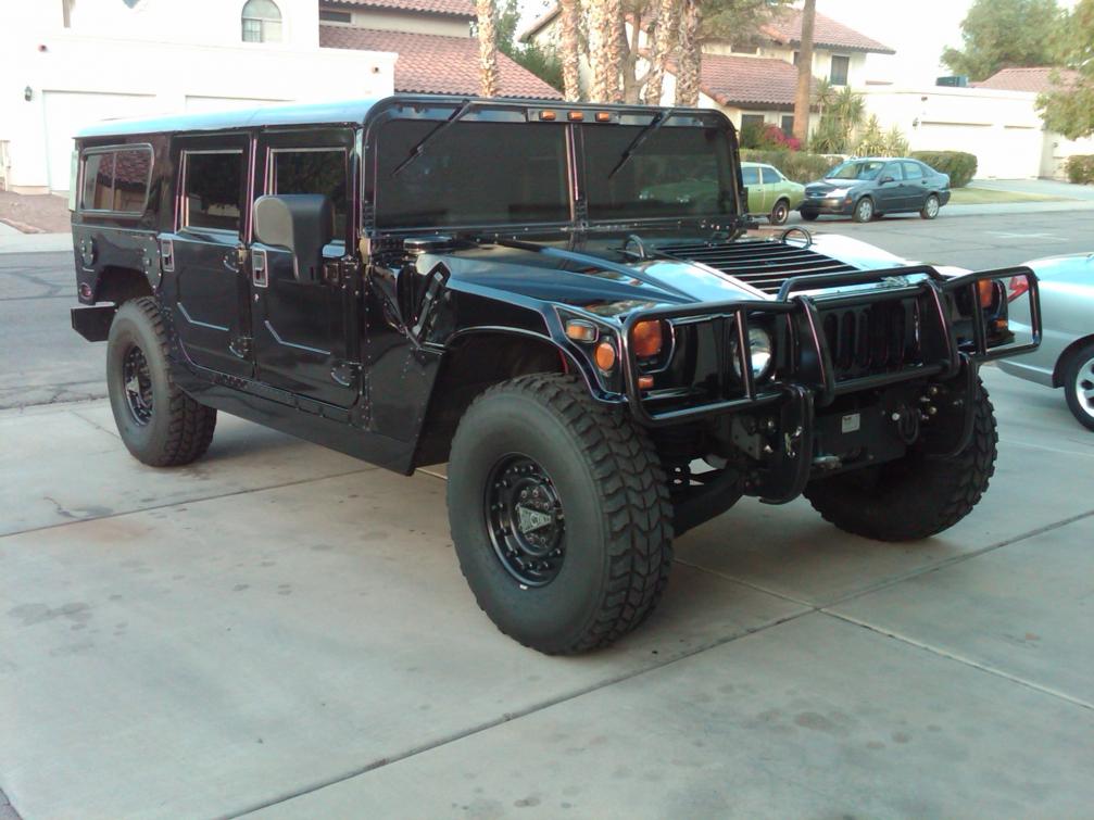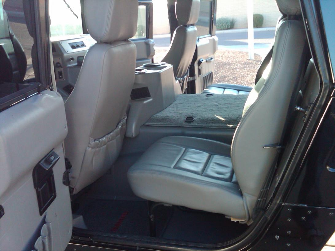 Beautiful and rugged 1998 Hummer H1 6.5L Turbo diesel Hardtop w/ grey leather interior. 71,000 miles. Clean Carfax, garage kept, very well maintained, driven regularly and loaded with features. Everything you’d expect from a fully loaded H1 including Alpine W200 DVD/TV/CD/Ipod with backup camera, Front and rear A/C (new Hummer style), Tinted windows, Momo steering wheel, Completely operational CTIS, 12000lb winch, Bucket Seats, Rear bench seat, Power windows, Power door locks, Front brush guard, 4-wheel pwr disc brakes, Full-time four wheel drive, Goodyear Wrangler MT tires, 16.5 two-piece steel wheels, Dual fuel tanks (25 gallon main/17 gallon auxiliary), 124 amp alternator, TT4 traction control system, Glove box, Flow-through ventilation, Padded interior, Utility lighting pkg, Pwr windows w/lockout feature, Front window heater, Heat & sound insulation, Upgraded dual black swing-away mirrors, LED marker lights, Windshield wiper/washer system, Vertical hinged swing-out rear doors and Spare tire holder.