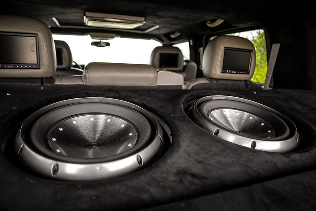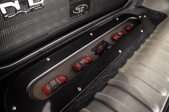 -Fully Custom stereo in the back feature 2 10" subs, Suede cover speaker box,