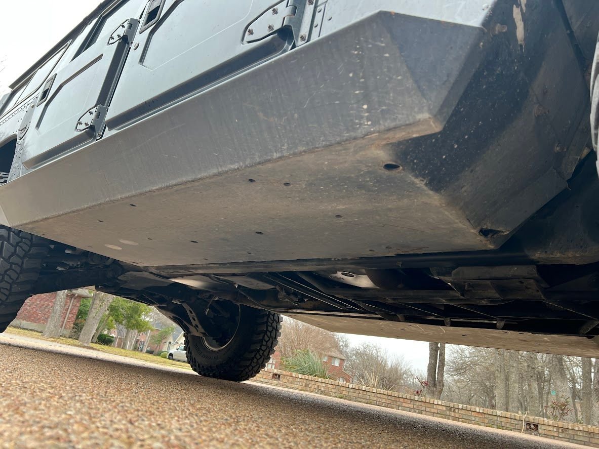 • Very heavy duty rock sliders / side steps, with underbody protection. I was told these were made by "Blue Hummer"?