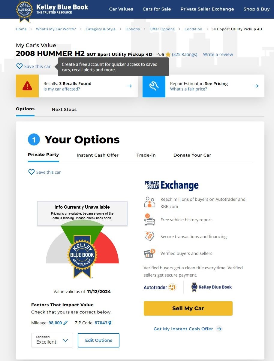 Whats interesting, Last time I check KBB they did not list a price for H2's. There really gets a big value swing. I think until the economy and the car market stabilized again its as Doc say's only worth what you can get for it. I definitely would not trust Carmax, Carvana, or for that any new car dealer to offer you an even remotely fair offer. So do your homework as best you can then listing it on as many sites as you can and waiting until you get what you want or just get tired of waiting. It's not like it was a couple of years back, people are not waiting with baited breath waiting for one to drop.