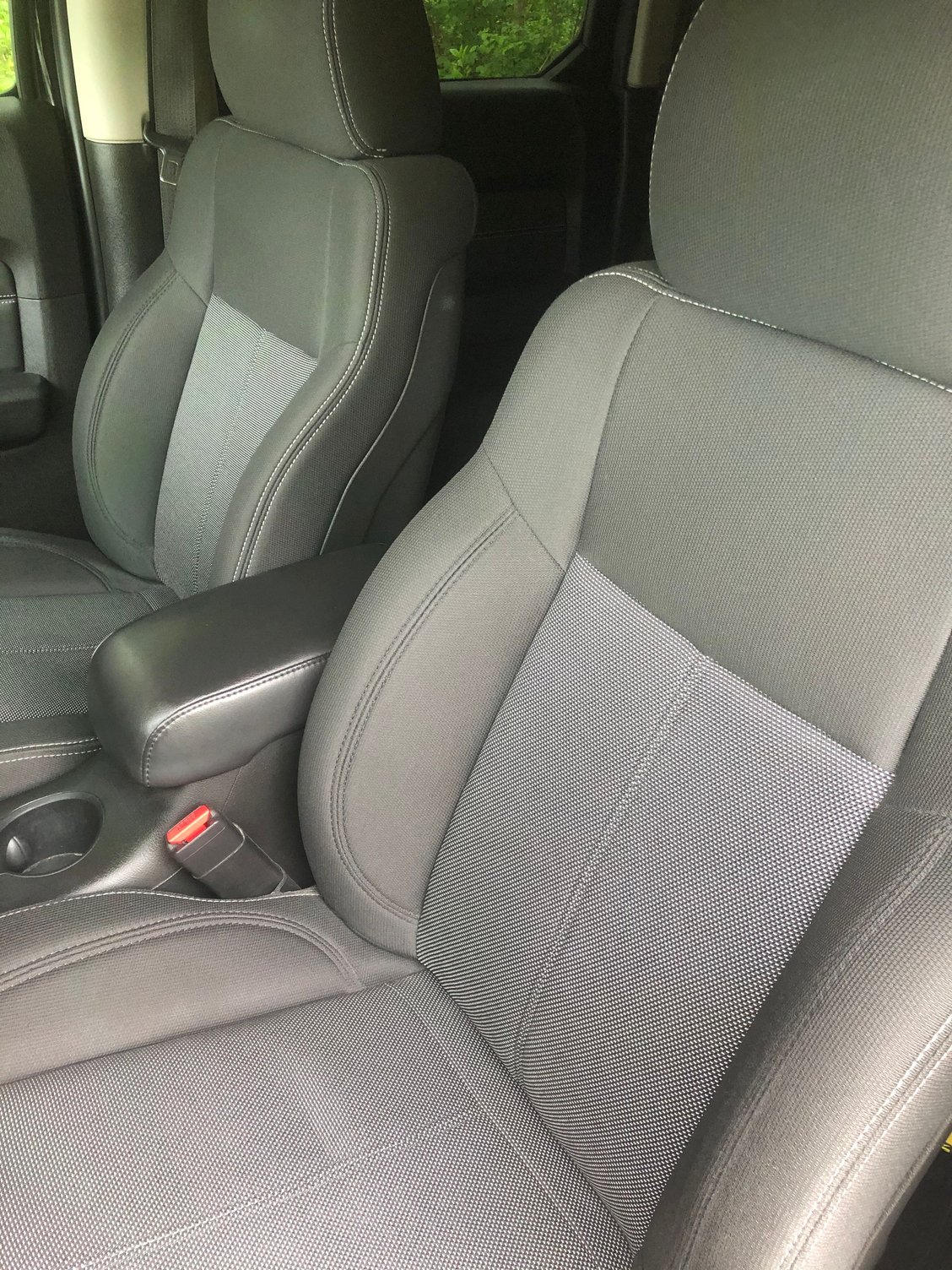 Cloth seats. Clean, no damage or stains.