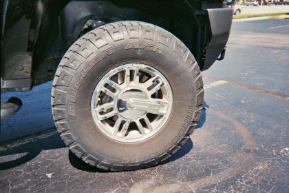 I've attached a photo of the stock Hummer wheel with LT285-75R16 (33") Bridgestone Deuler AT tire. Also a photo with new 18" Cepek with Nitto Trail Grappler LT295-70R18 (34.6") next to it. Just put the Cepeks/Nittos on yesterday and getting an alignment tomorrow morning, as I leveled the front end to 23.5" before mounting the new stuff. Haven't driven it much yet, but heads are really turning. One guy walked into a street sign as he looked back at us earlier today,