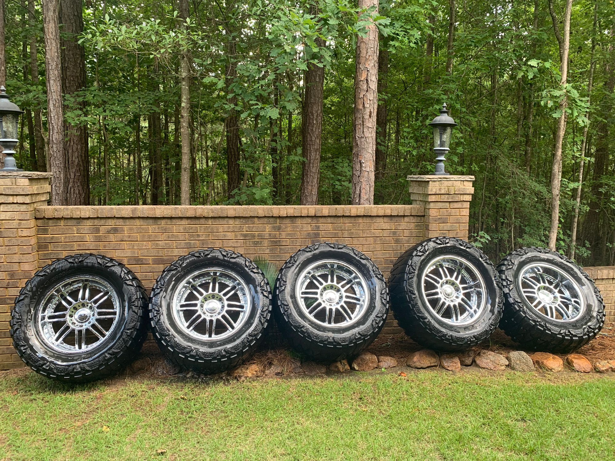 For sale 5 KMC Dime wheels ,chrome 22x10 6" back spacing ,from my 2005 Hummer H2 with 5 Nitto mud grappler 40x15.5x22 in Tire’s. 1 tire is new never been on the pavement, other 4 tires are about 25% tread. $2000.00 . Call or text me at(770) 356-0329 thanks Randy