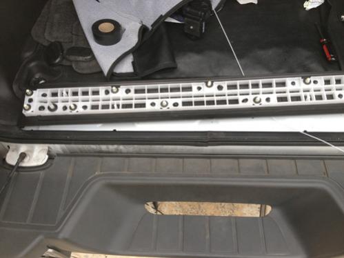 I routed the wires from behind the dash to drivers side, along the bottom of the kick panels, sidetrim, to the back gate then through two holes behind (driver side rear corner) - see attached pic. The wire come out between the rear drivers side wheelwell/bumper. There is a black plastic plug/cover that you will need to remove/re-install once you run the wires through. be sure to use a grommet or cut a notch for the wires so you can re-install the plug properly.