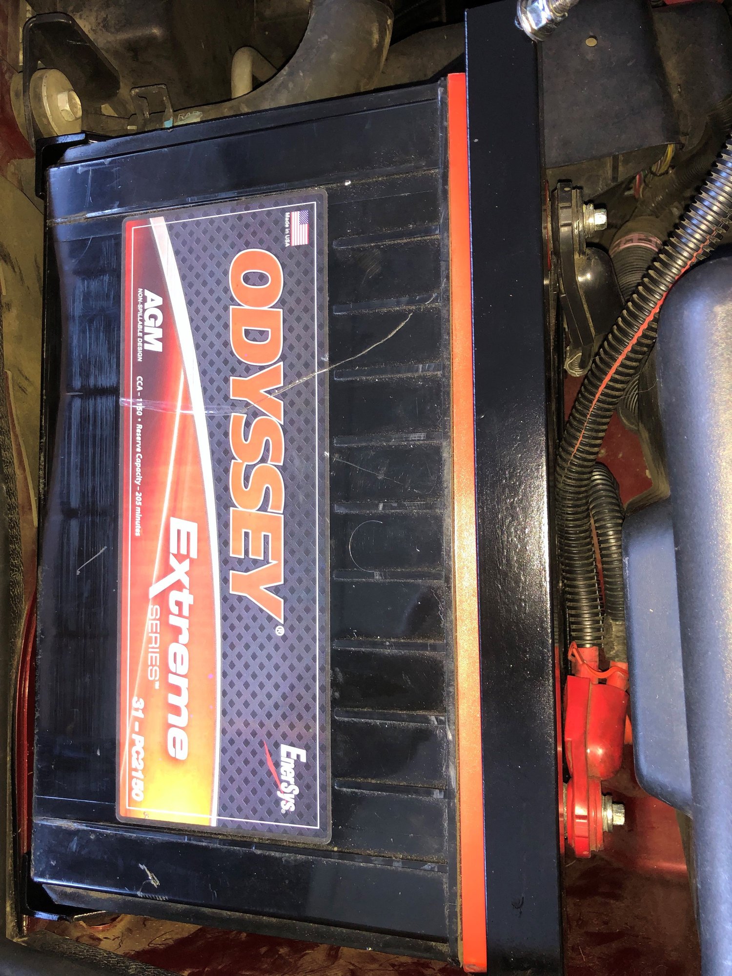 I installed a new camera system with a DVR and my battery could not handle the deep cycles (draws about an amp). I looked into a dual battery system but was concerned about the total capacity (dual PC1200s). I did not want to create an additional battery location for the second battery. The best solution I could come up with was to use an Odyssey 2150 battery. I was able to use the existing cables and just needed to make a custom battery tray. Here are some pics: