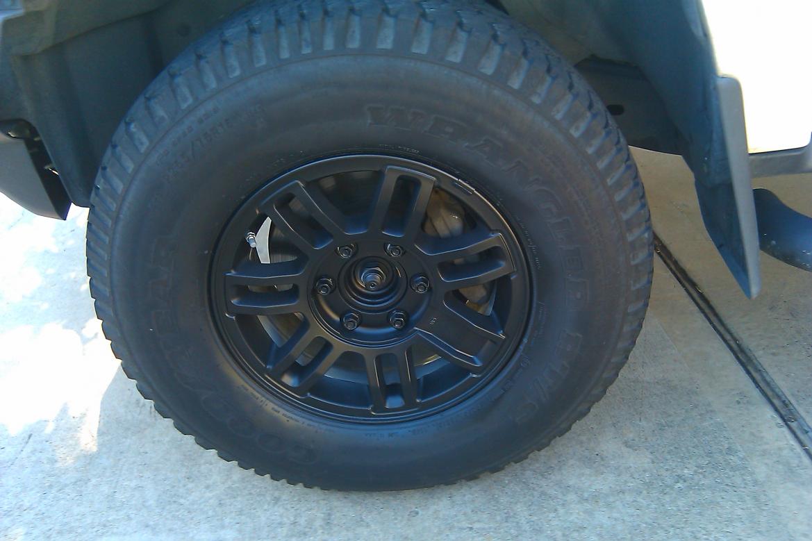 I had some free time on Labor day so I decided to plastidip the wheels. $6 a can at home depot. It's cheap and simple way to black out your rims, although it is not going to be as durable as a decent paint job or powdercoating. On the plus side you can remove the plastidip at any time and touchups are easy.