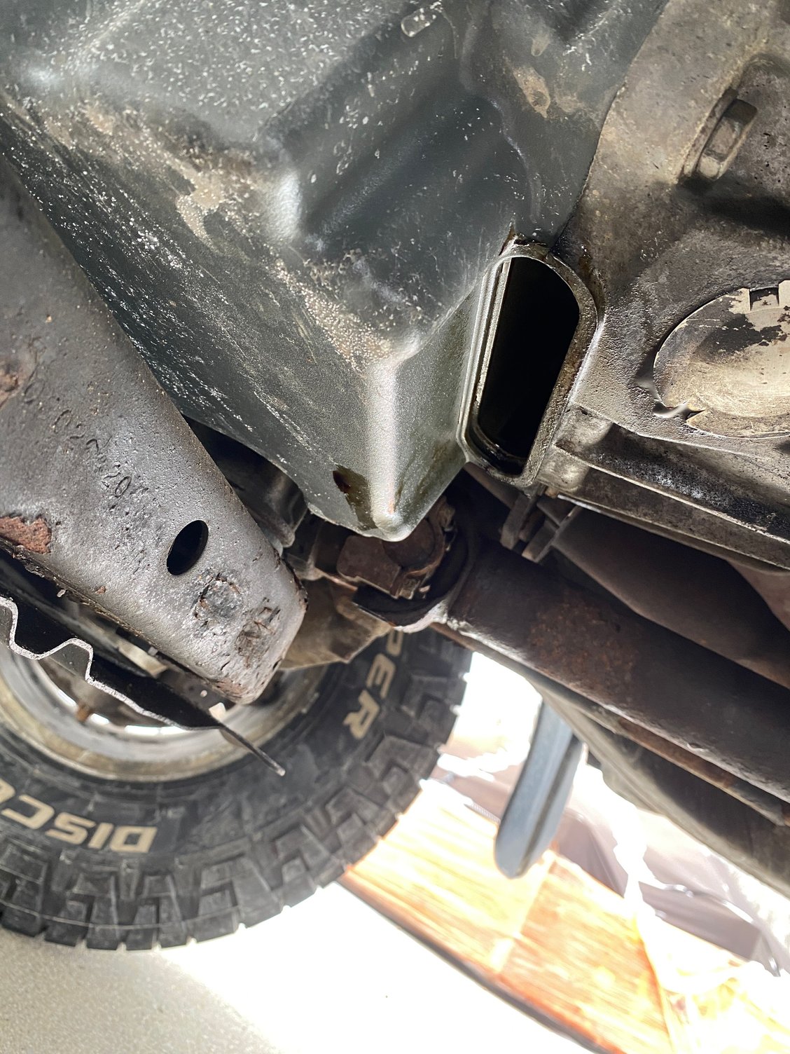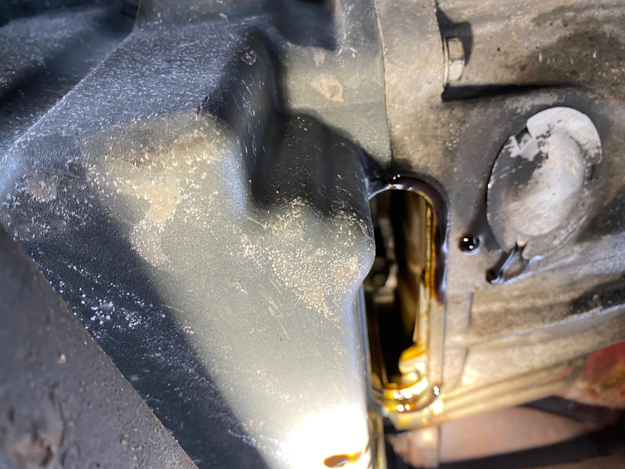 I got to my inlaws house. The Hummer was acting funny and was making some wired noises. i found out i am leaking oil out of this spot. A gasket needs to be here right and it definitely shouldnt be open 😵💫. We decide to drive the hummer because of the big storm rolling through michigan. now i am on the other side of the state wondering if i can even drive home with my family. leaking from this spot