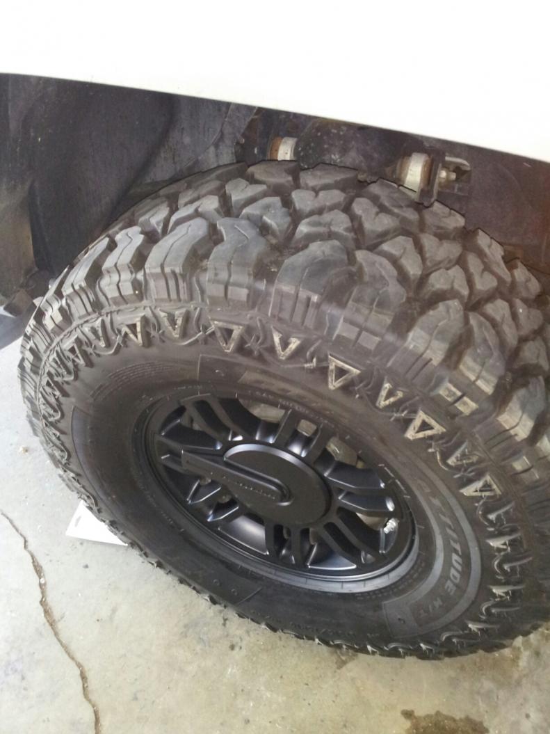 Looks good staggs. Makes a huge difference once the wheels are blacked out in the looks department. Any sort of break pad upgrade? My fronts need to be replaced soon and just curious on what others are using one their rigs.