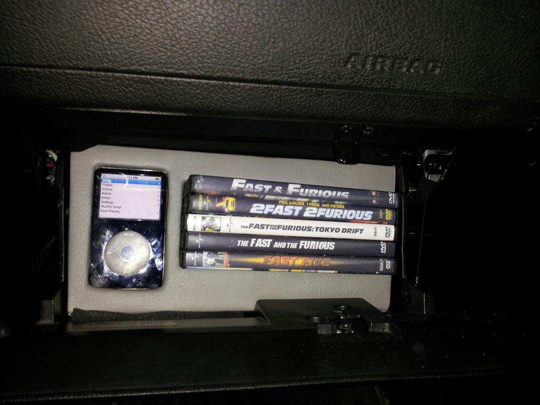 also just added a stock brush guard, I picked it up for 50 bucks on craigslist to add a little looks until I can actually save up for a functional one and I made a little Ipod/dvd holder for the glove box. Yes, that's an old school Ipod, my Ipod touch is only 16g and I have 21g of music and the old Ipod video is a 30g one