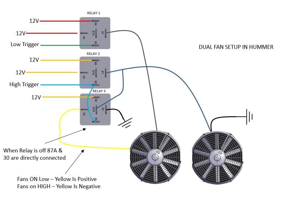 I wanted to share the troubleshooting diagram I made from this past weekend on the trail, I lost my a relay from my 3-relay harness (yellow wire) causing issues on the rig, BP automotive guy was a real jerk when asking for assistance on how it was wired up figured it out myself using Utube and did a trail fix . I made this and wanted to share the diagram in case anyone wants to make their own harness for the electric fan upgrade.