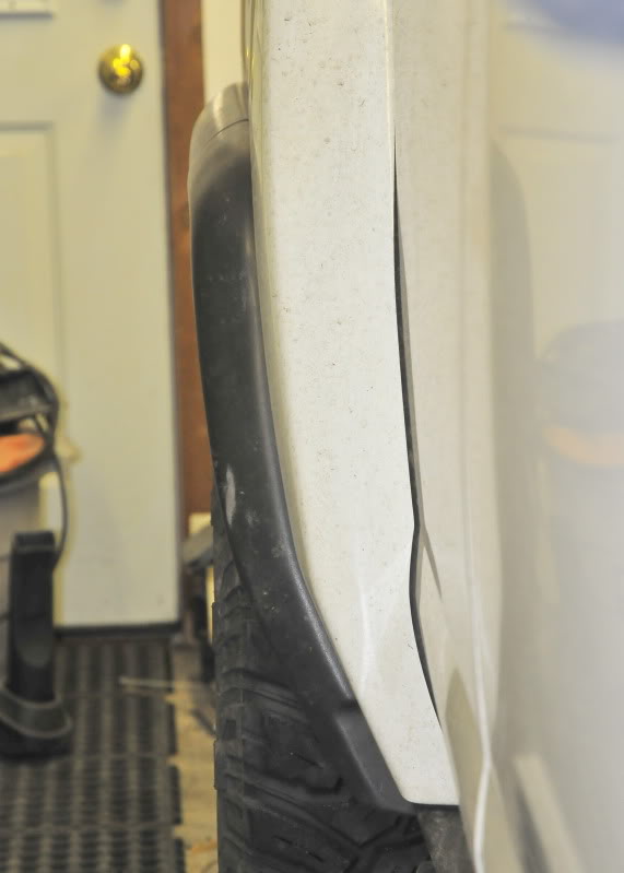 The ones that come with flaps do have a molded area for them to slide under. The rear flaps seem to drag thru ditches. The fronts don't seem to get hit as much. They will throw the mud further back on the door. Either 285's a little or especially 315's will rub the flares when compressing the suspension. A simple fix is trim the lower lip up the rear and across the top of the fender opening. It will not show that you have done this from the outside. See if any of this info helps. Might not be for everybody but back when I bought my shiny new 06 H3 I wanted to protect it as much as I could. I found the flares for it. I installed them with the Bridgestones and they work fairly well. I moved them to my 08 Alpha. Running MT/MTZ they sometimes rubbed at the top on the rear wheels. I removed them for awhile and now have obtained a new set plus some spares, decided to work on the old ones. I have been running in thawed out mud and melting snow for days now. It might be macho to drive around with mud all over the H3 for a day or two but I have to keep mine clean so I can see all the parts. I also have to go places I would rather not have mud all over me from getting in and out. I am going to run lots of roads like that this weekend and wanted to try again. I may install the front mud flaps but I will leave the rear ones off. They sometimes hit the ground. The main purpose for me is to reduce the amount of spray on the sides. Throwing stuff out the back does not bother me. I removed a full inch from the inner lip. That will allow room for my 315's to stuff. I also removed the bottom lip that holds mud and crud. I used a Dremel with variable speed and a small rotary rasp. I selected a speed that cut more than melted. I used a router guide attachment to control it better. Then using 60 grit paper I finished the cut edges. Attachment 16263 Attachment 16264 Attachment 16265 Attachment 16266 Attachment 16267 Attachment 16268 Attachment 16269 Attachment 16270 Attachment 16271 Attachment 16272 |