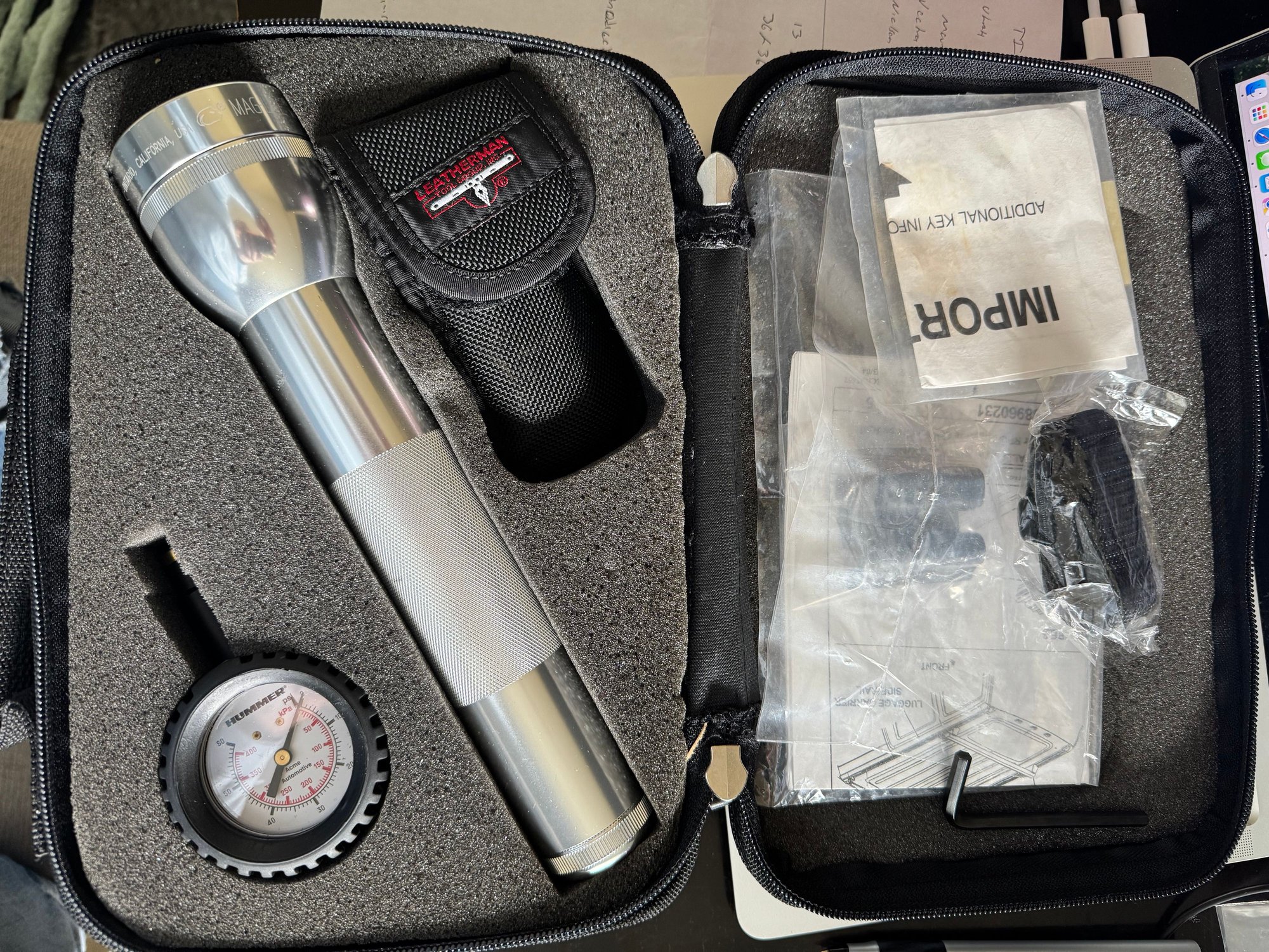 I also have an H2 leatherman kit with Maglite and tire gauge.