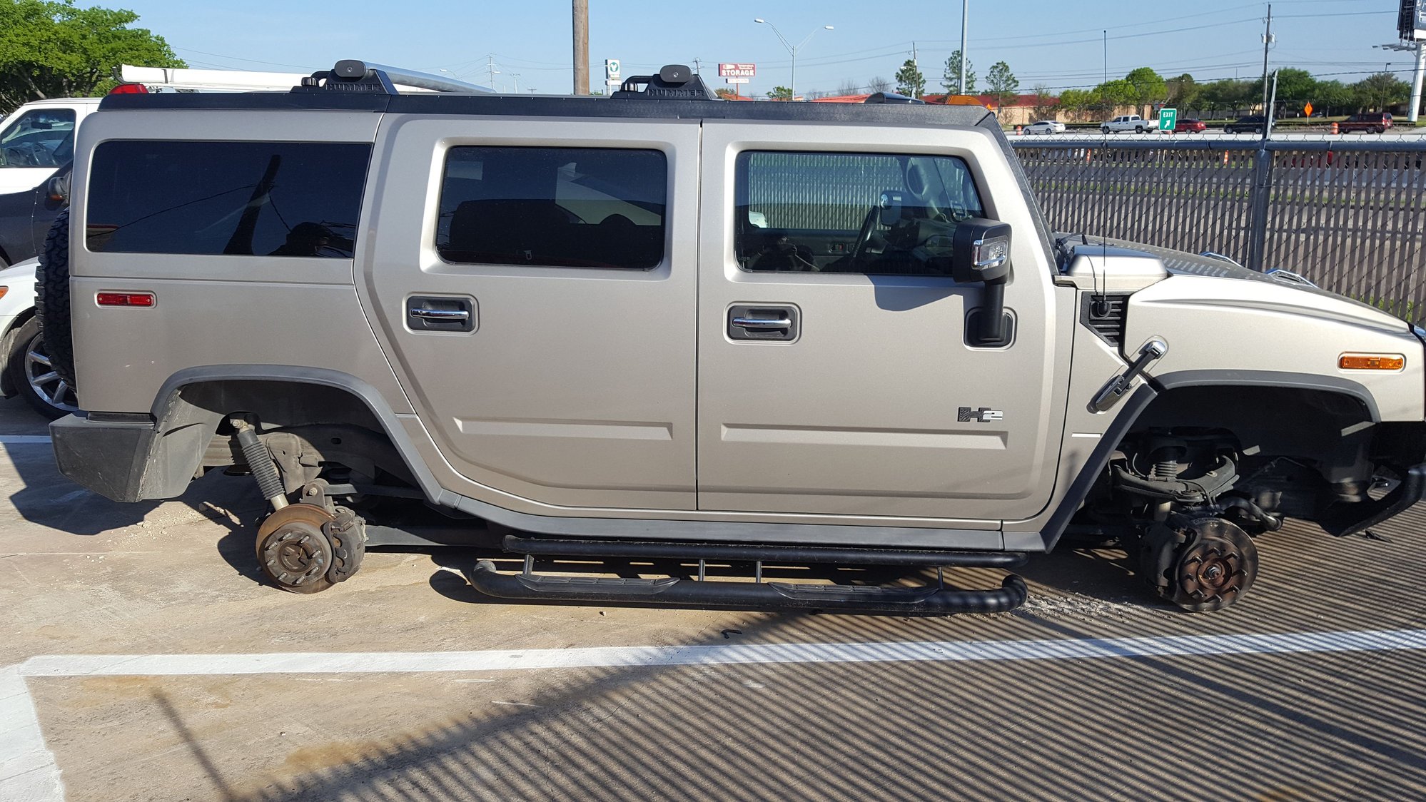 Well, thanks to the incompetence of the tow truck drivers, my H2 is now totaled. They damaged the rear differential housing, the diff cover, front sway bars, both front rotors, steering linkages and several other parts underneath. This stuff put it over the repair limit. I'm so pissed. Of course Progressive isn't going to pay enough for Replacement.