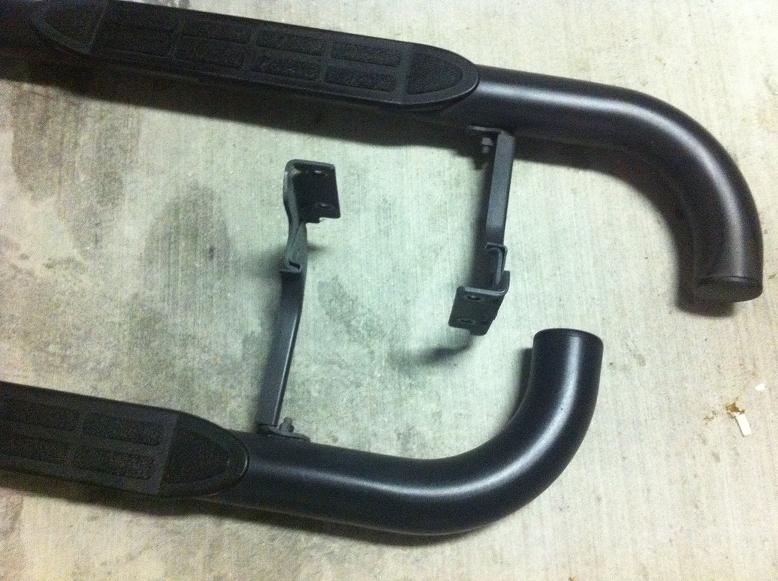 here are some pics of the brackets ,(2) the same + (2)the same ,, they attached to the tubular steps with a 45 angle U bolt .