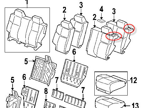 That's the only diagram I can find but if you notice the picture of the part is there (to the right of the head rest) but no number for the part. I attached a pic of the part I'm talking about and circled it.