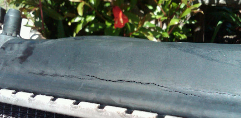 There are several threads about the top plastic radiator tanks cracking. It is a design flaw. Some people try to get the dealer to replace them. I opted to just have mine rebuilt locally with new tanks.