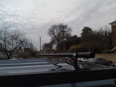The third and fourth pictures are the finished and installed rails. The fifth picture is how I mounted the angle brackets to the roof. Ground a washer down so that it would fit under the track that the factory rails go into and then welded it to the bolt so that when I tightened the nut on the top of the bracket the bolt would not spin with it. I used a washer between the angle bracket and the roof rail and another washer between the nut and the angle bracket. The bracket was just a piece of angle that is used to hang electrical conduit that cost between 2-3 dollars a piece.