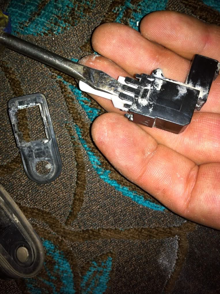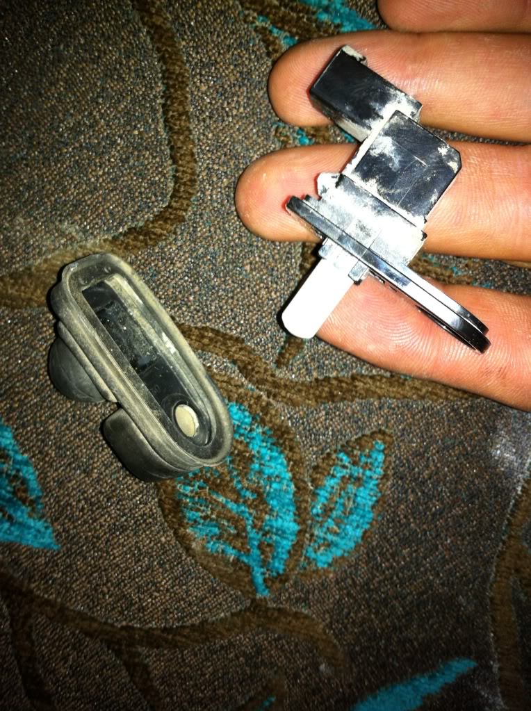 this is due to bad oxidation in switch contact in the door panal so let's solve the problem first remove the door switch Attachment 13919 i think the bolt is star type Attachment 13920 then remove the connector switch Attachment 13921 now you have the switch first remove the rubber cover Attachment 13922 use - screw driver just remove the cover don't be hard these plastic cover are very easy to brake Attachment 13923 the cover removed remove the metal bar next Attachment 13924 now remove the button as you did in the cover Attachment 13925 chick out for oxidation and use oxidation remover spray but dont forget the inside two metal Attachment 13926 too much oxidation here:eek::eek::eek::eek::eek: Attachment 13927 Attachment 13928 install back the button first then the metal Attachment 13929 Attachment 13930 last thing re install the rubber cover and screw the bolt chick out if the key in ignition u must hear ding sound once the key removed CD player will turn off and the dome will light any time you open a door thanks and regards sorry if u found grammatical mistakes i am not native speaker |