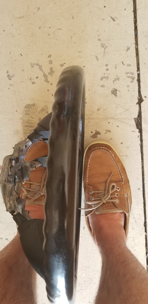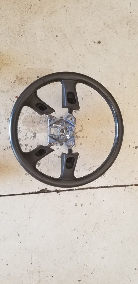 Factory steering wheel. The top leather peeled, I sprayed it with clear so its not rough but needs recovered. $50