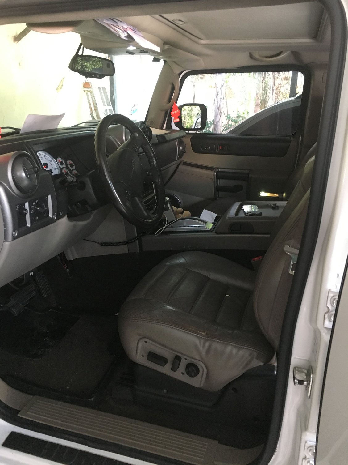 this is my hummer h2, its a 2003, I been with it for about 4 years now with some minors problems but dude!! i really love my hummer. this pic was after a country trip this is the back seat if someone knows who to make those headrest screens works let me know plz.. this is the driver seat, the onlys upgrades i have made was the radio for a dvd one... im planning on changing the color of the from grill to black, what you think guys?