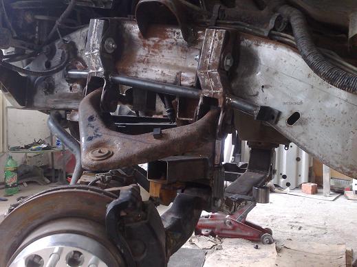 regarding the upper brackets mounting...they are not weld in and i am not thinking about that..just for the moment. i was trying to make everything bolted in not welded. so for the upper brackets i made 5 points of bolting: 2 are the original ones where were the upper A arms, 2 are along the chassis and there is another one which you can't see it from the pictures which is on the bottom of the chassis (when i am going to take appart everything for painting i am going to make explicit pics). and there will be another point (the 6th) with the shocks bracket ...so i hope that everything will stick togheter...if not...than i will weld everything in place (but hope not)...