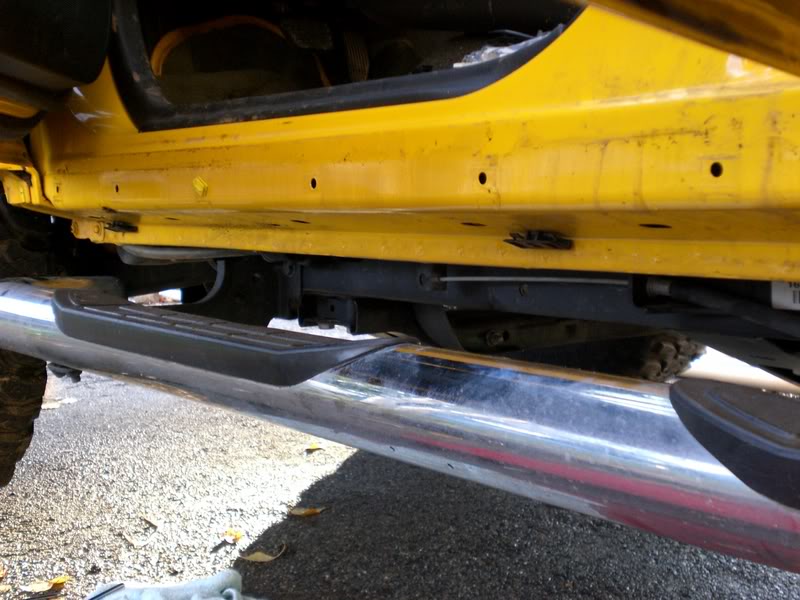 gunner, it's real easy...there are two 10mm bolts, one in each wheel well. Then there are a few clips under the truck by the pinch-weld. You have to use a flat blade screw driver and push the tabs in then slide the cladding away from the pinchweld...there are two tabs per clip. The rest of the cladding is held on by nothing but plastic push clips..I started at the rear and slowly worked each one out....you can see in the pic the holes where the clips go into. I was expecting it to be harder to remove but it wasn't hard at all...especially once you get over the cold sweats from fear of breaking it in half:D:D