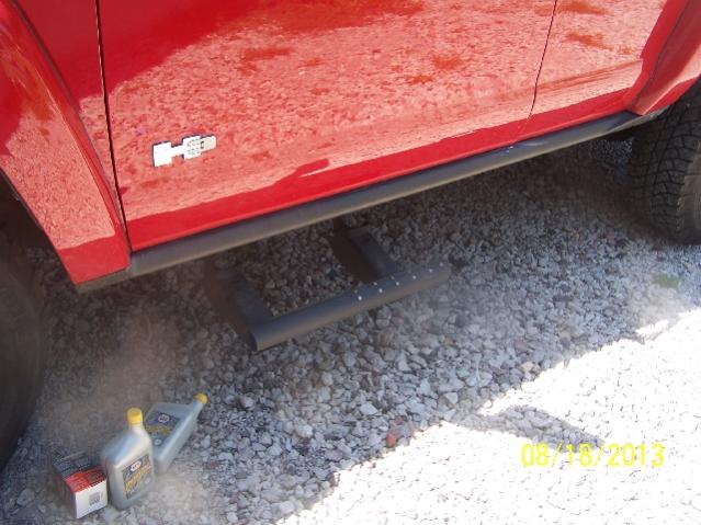 btw the "small step" for test is a short piece of 2.5 in tailpipe left from a jeep job! using the two orig front brackets from the h3 steps.
