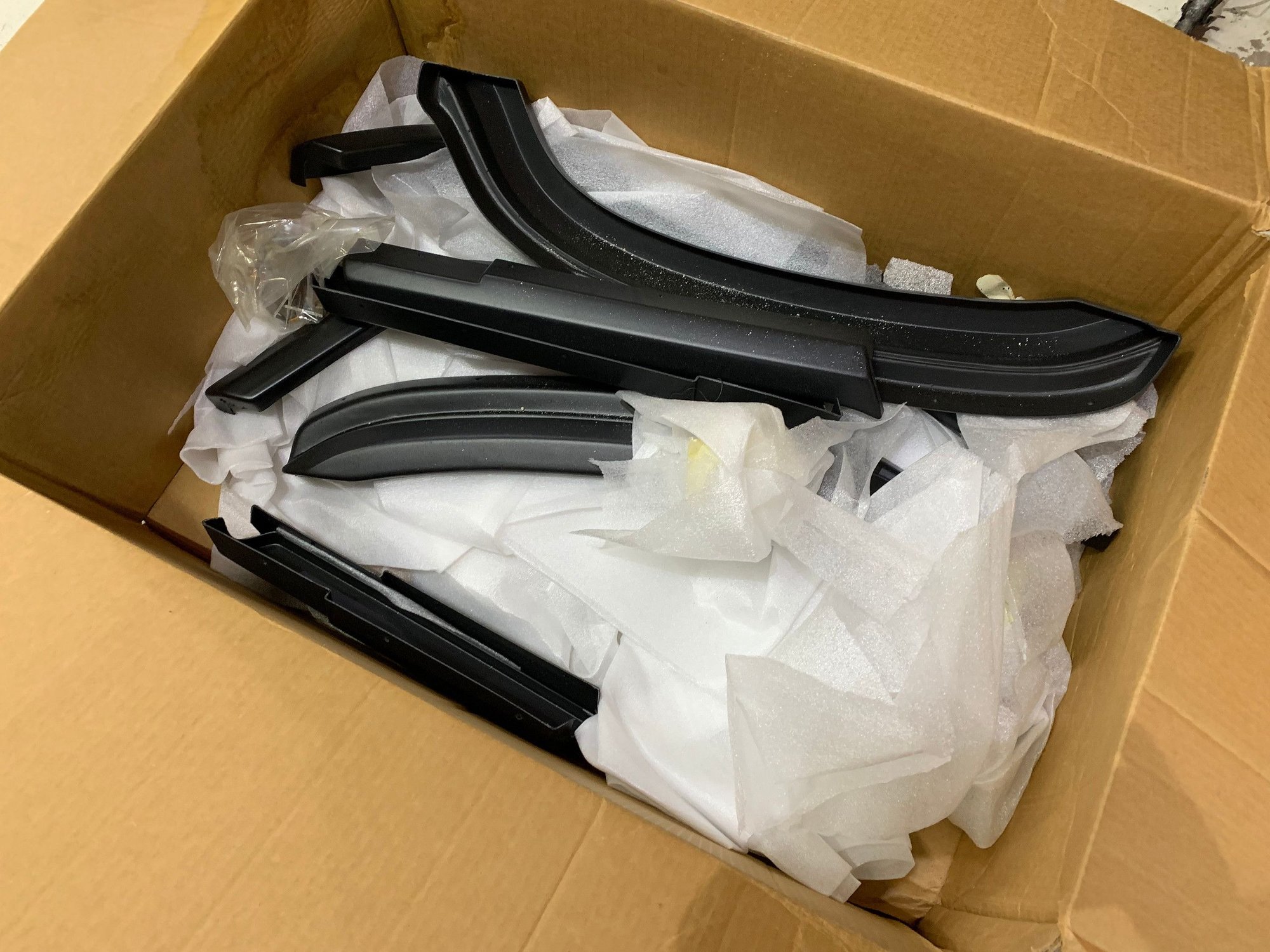 Pictures below the box are of some custom H1s we built that had the fender flares on it. The set we are selling is a 8 piece OEM not 6 piece as shown on the H1 below. The white specs on the flares are just dust and was wiped off after the picture. All installation hardware included.